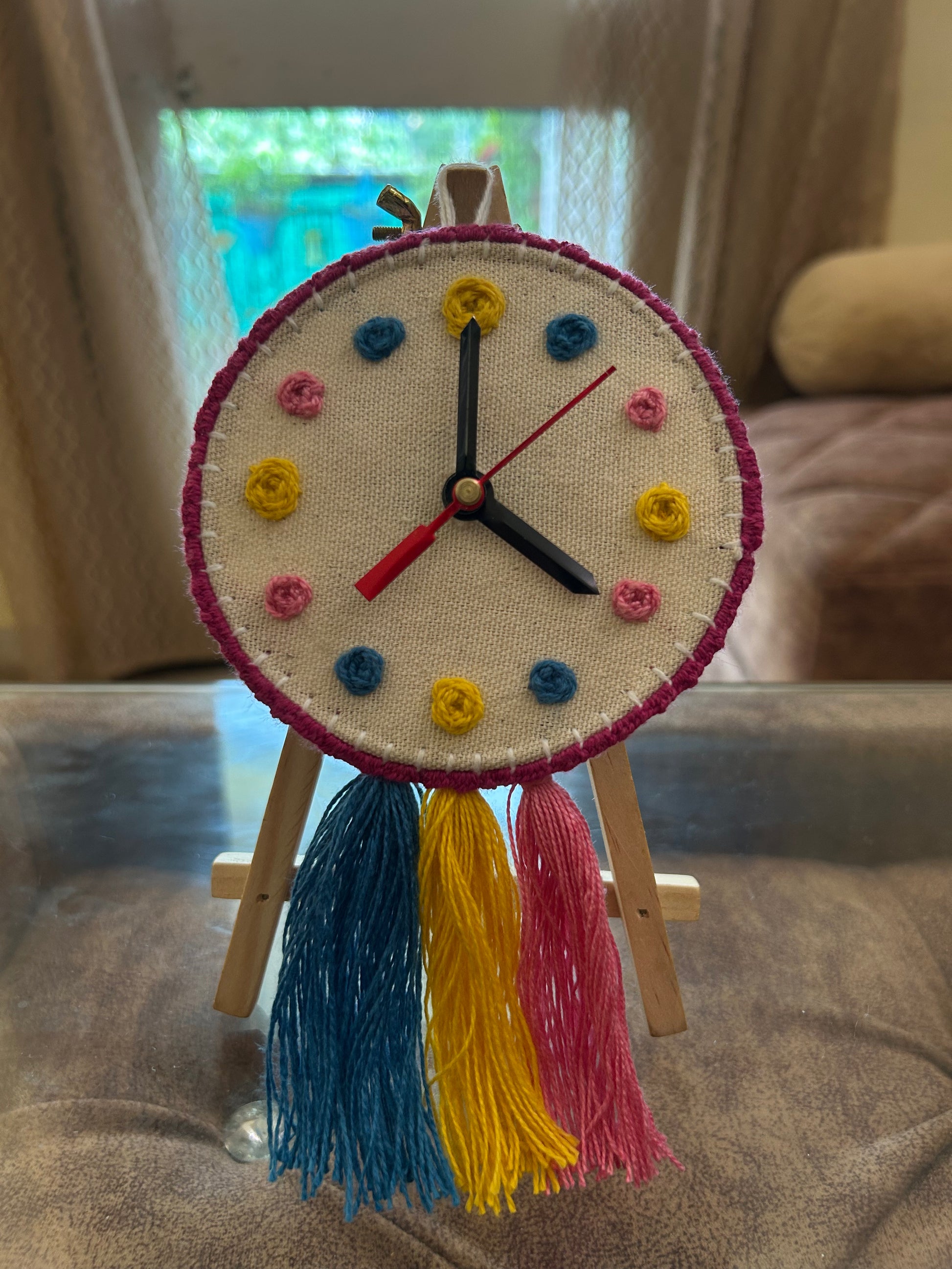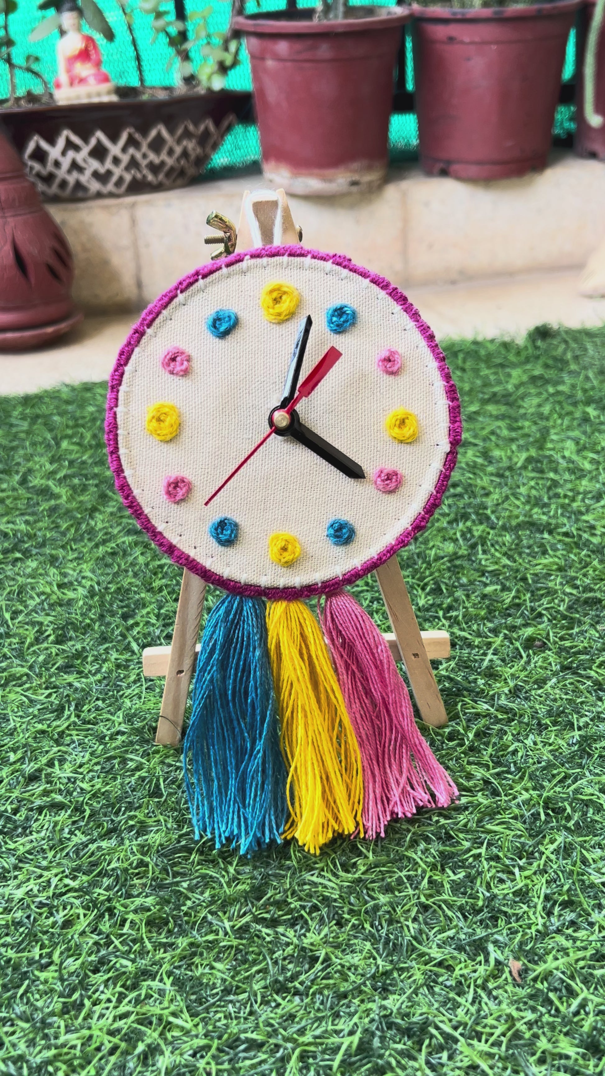 Brighten up any corner of your home with this adorable mini embroidery hoop clock, handcrafted with vibrant threads and pure heart! ππ