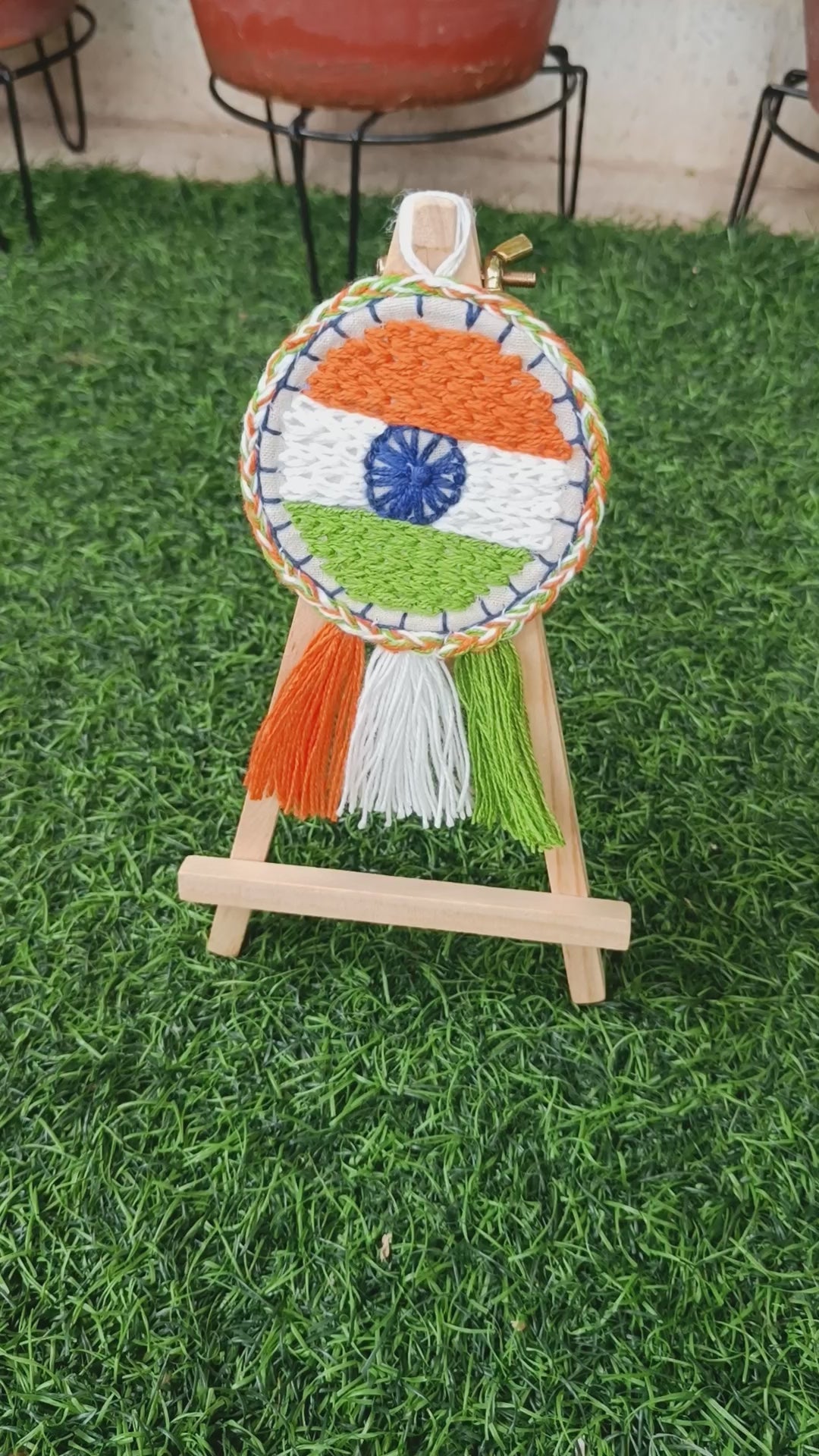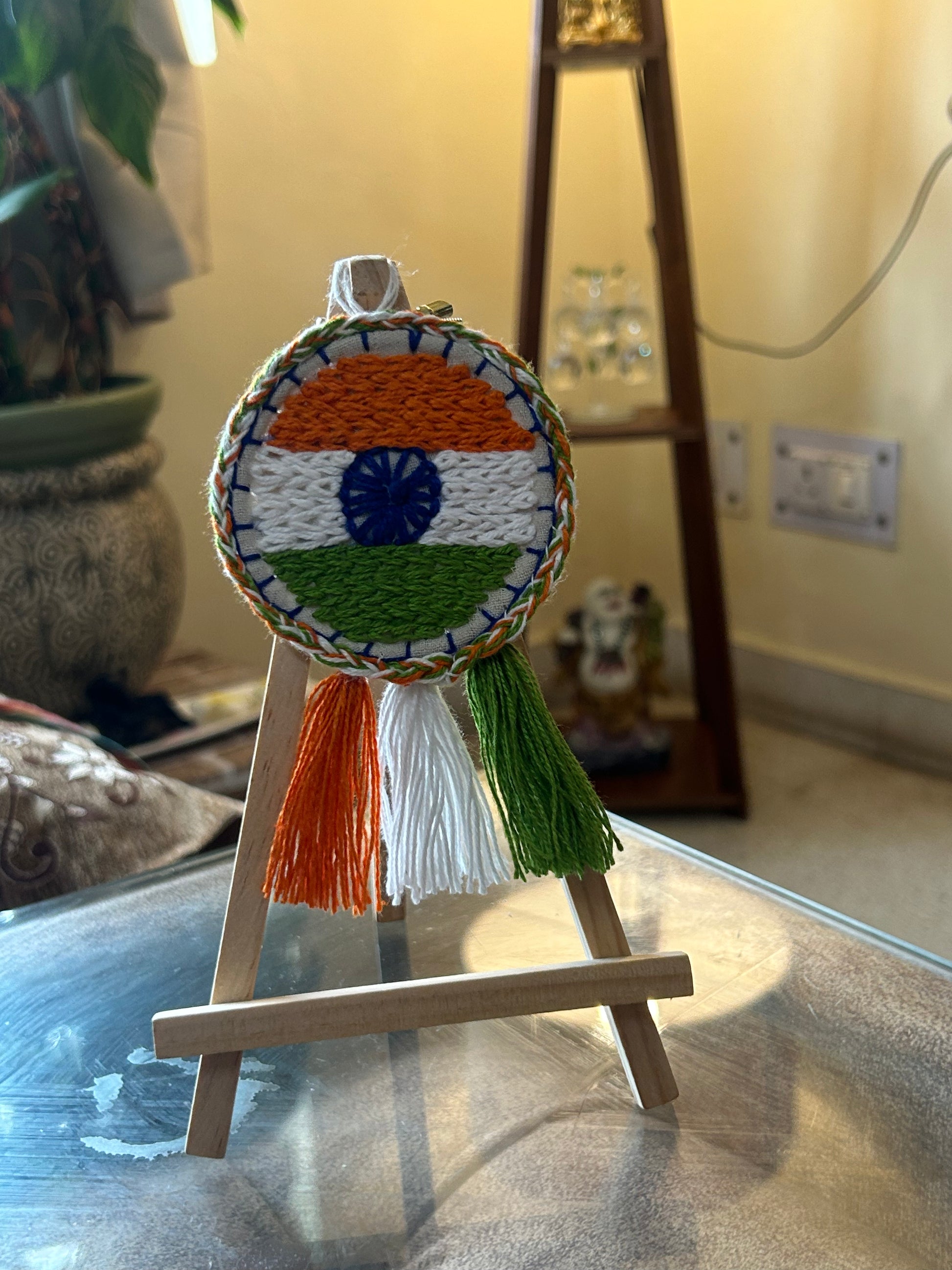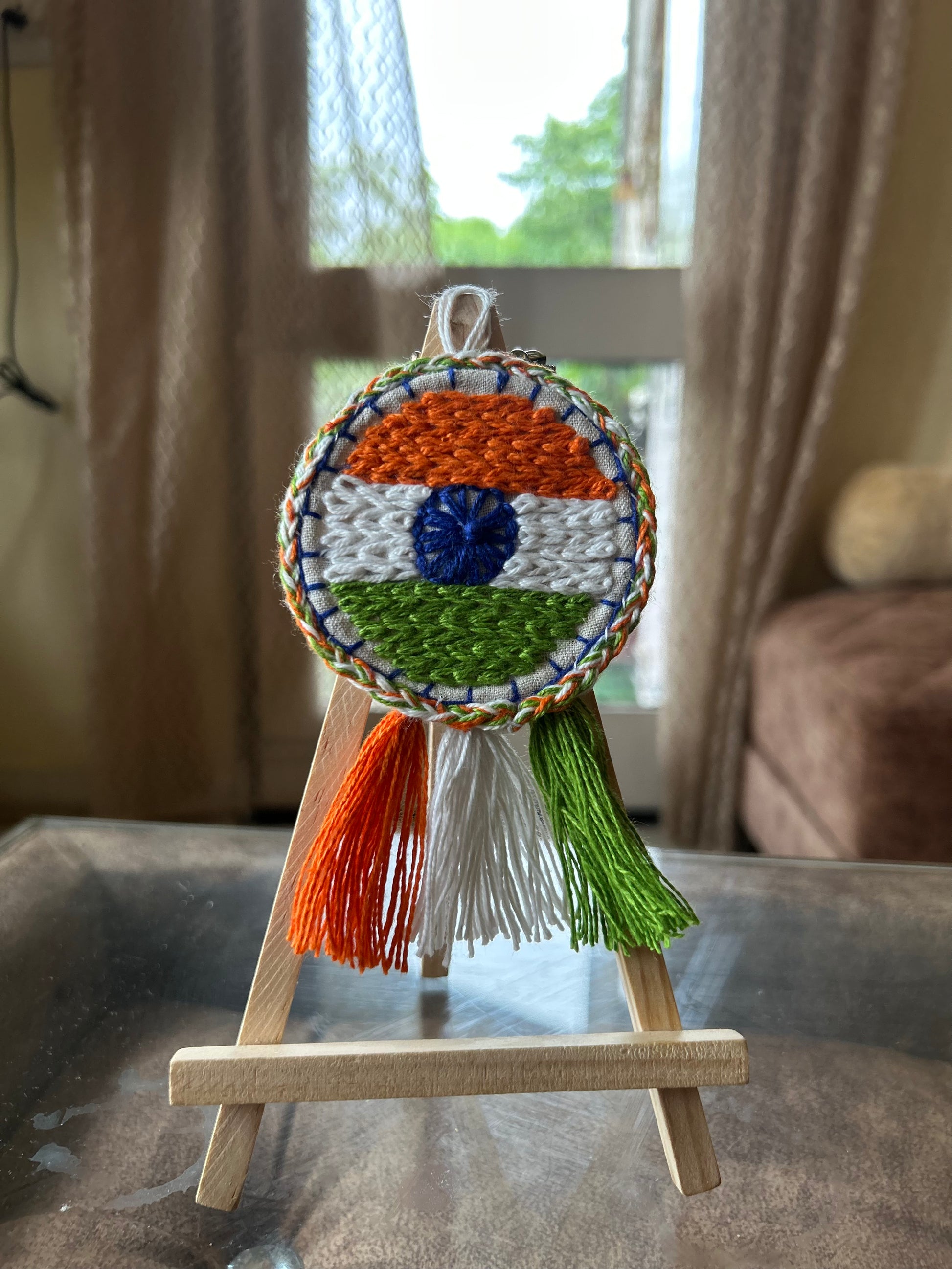 Celebrate the spirit of India with our Tricolour Hoop Charm, lovingly handmade using recycled threads and fabric. Featuring the iconic saffron, white, green, and the embroidered navy blue Ashoka Chakra, this charm isnโt just decorative โ itโs a symbol of patriotism, unity, and handmade pride. ๐ฎ๐ณ
