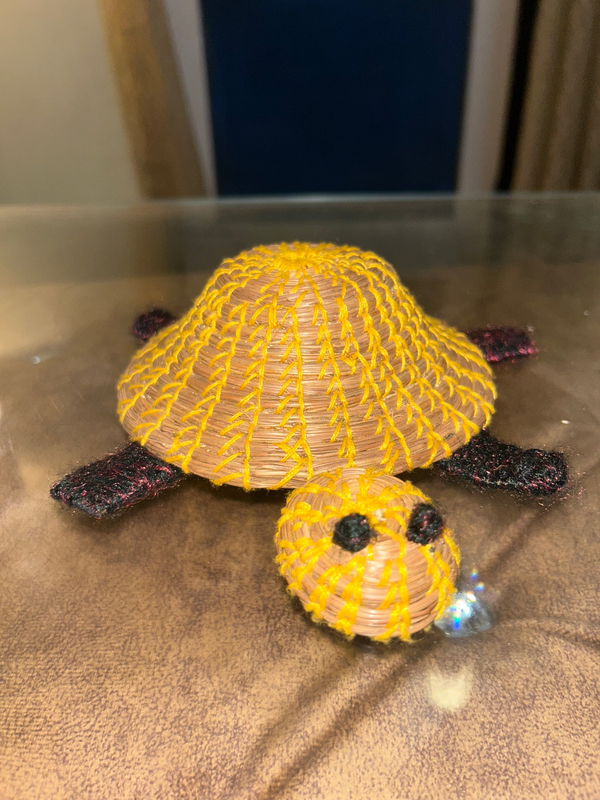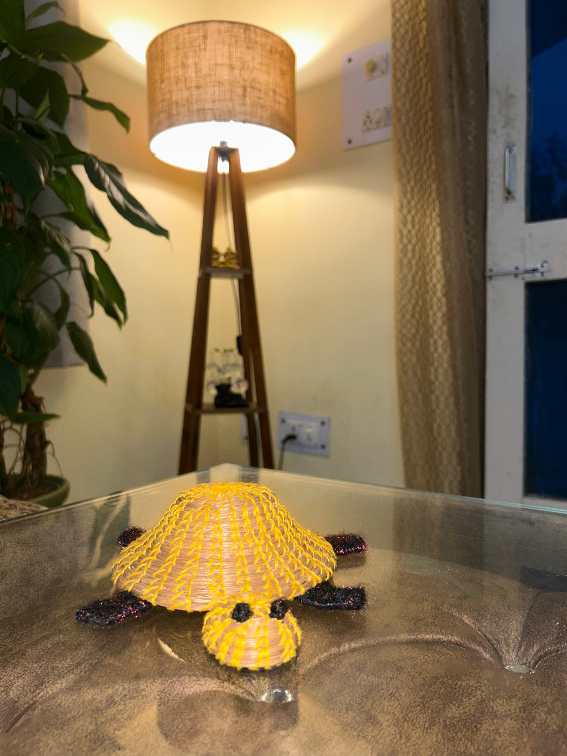 Add a touch of charm to your space with this handcrafted turtle made from natural pine and colorful thread work. Symbolizing peace, protection, and longevity, it’s perfect as a home décor piece, gift, or even a lucky desk charm.