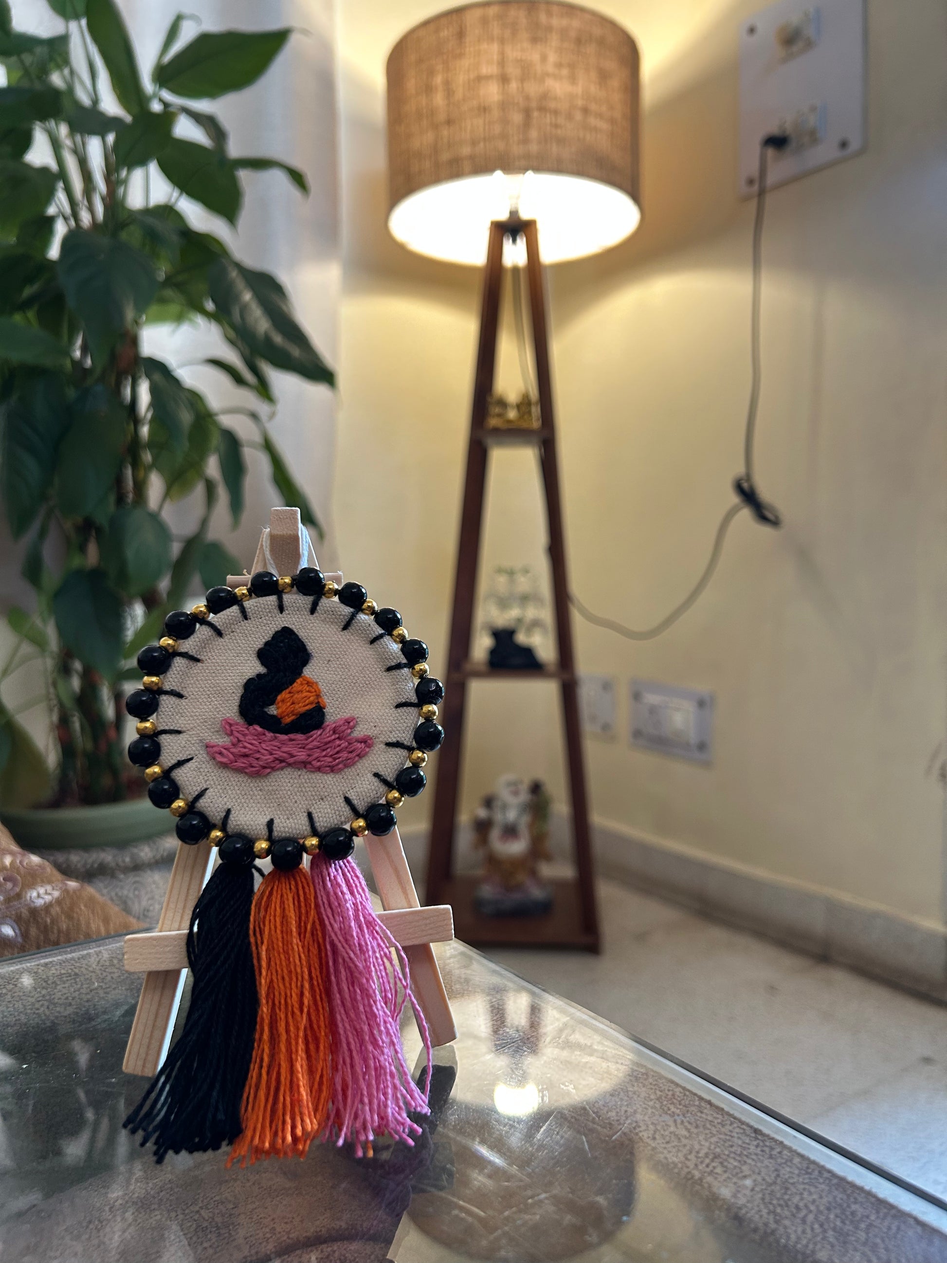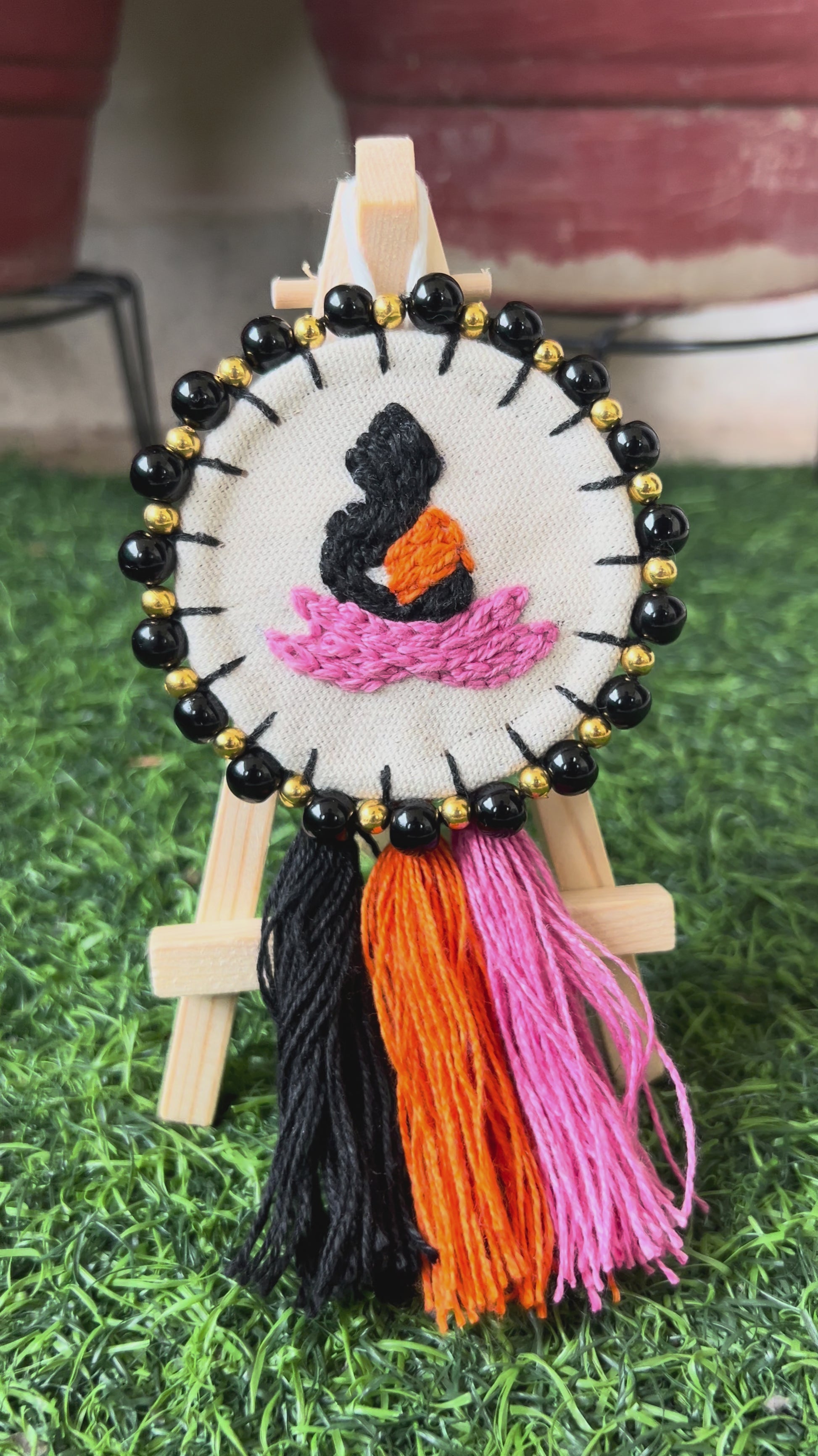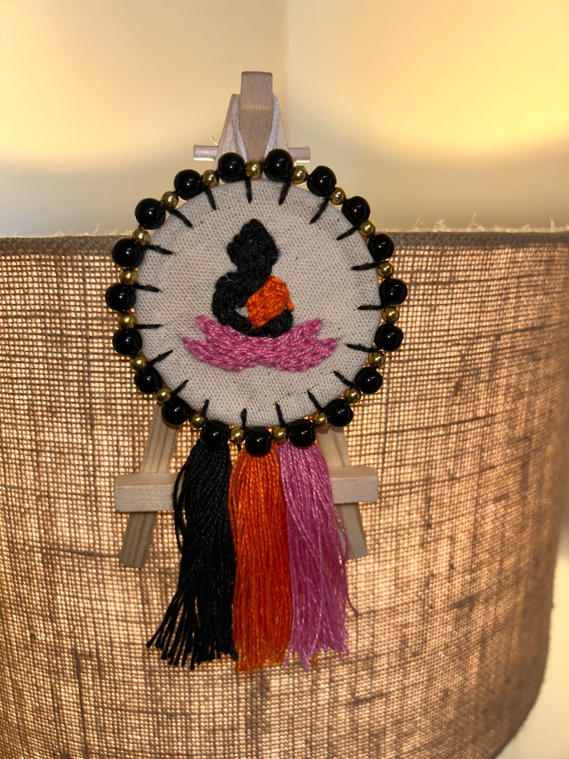 ๐ธ Bring peace, color, and artistry into your space with our Handcrafted Embroidered Meditation Charm from the Zen Lotus Series ๐งโ๐ชท. Featuring a serene meditating figure ๐ intricately stitched on canvas, this piece symbolizes inner calm and self-discovery โจ.